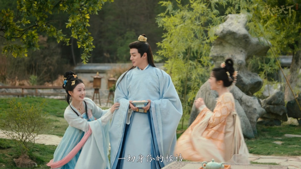 李治、高阳公主、武元照三人在御花园嬉戏打闹