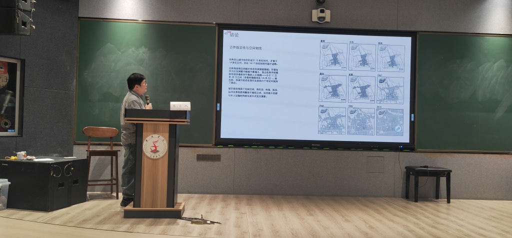 26日会议移师天台县天台山文化研究院。上午的“舆图与建筑史学”议程由同济大学刘涤宇副教授、西安建筑科技大学吴国源教授分别担任召集人、主持人,该议程以运用建筑史学的方法论深入解析传统的山川名胜舆图为主线,兼及图像学、符号学、艺术史等多学科的交流,旨在深化建筑史学视域下对舆图研究的理解。本组专题报告涉及报告人长期教研实践中总结的建筑史学的图像思维及其方法论探讨,以及五台山寺庙、黄运交汇的清口水神祠庙、浙东运河的慈城古镇等地建筑群的传统舆图表达,在古建设计实践中发现的舆图的建筑立面表达及其营造意识等议题。