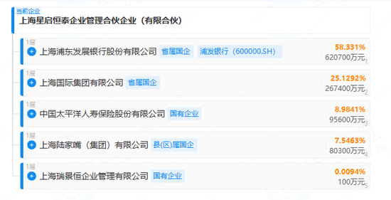 12月12日,一家名为“上海星启恒泰企业管理合伙企业(有限合伙)”的企业在上海自贸区成立,注册资本106.4亿,第一大合伙人为浦发银行,持股比例58.331%,人寿为第三大合伙人,持股比例为8.9841%。