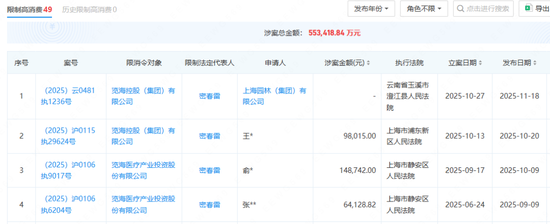 企查查显示,密春雷被限制高消费,涉及金额超过55亿。