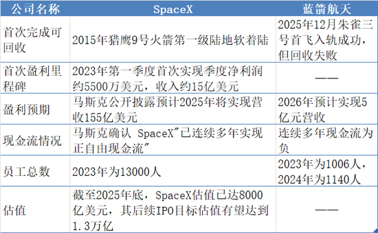 SpaceX与蓝箭航天对比情况 制图:界面新闻