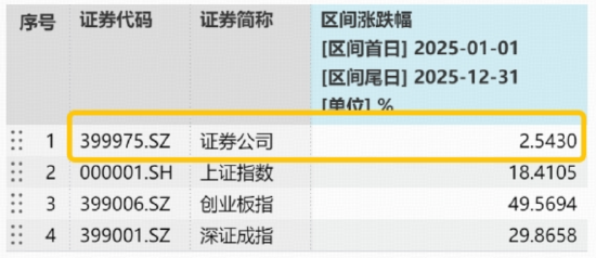 数据显示,2025年券商板块整体滞涨,券商ETF(512000)跟踪的年度仅微涨2.54%,明显落后于大盘,同期指数市净率PB(LF)为1.52倍,位于近10年42.86%分位点的中低水平,与高增业绩显著背离。