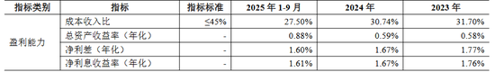 数据显示,2023年至2024年及2025年前三季度,该行净利息收益率分别为1.76%、1.67%、1.61%,净利差(年化)分别为1.77%、1.67%、1.6%,持续收窄趋势明显。