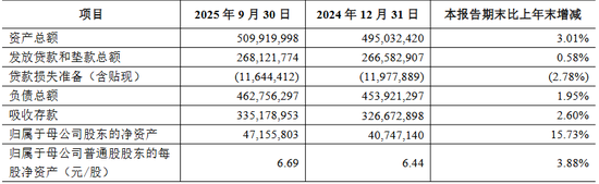 截至2025年三季度末,该行发放贷款和垫款总额2681.22亿元,较一季度末减少62亿元;吸收存款余额3351.79亿元,较一季度末收缩45亿元。存贷规模收缩直接导致资产规模波动,三季度末资产总额5099.2亿元,较一季度末的5115.75亿元减少16.55亿元。