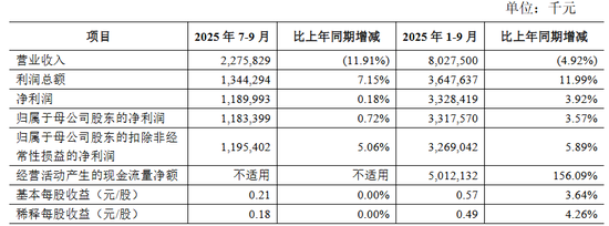 2025年前三季度,青岛农商行实现营业收入80.28亿元,同比减少4.92%,且降幅呈逐季扩大趋势。具体来看,该行一季度营收同比增长0.99%,二季度转为同比下降4.84%,三季度降幅进一步扩大至11.91%,显示出业绩下行压力正在加剧。归母净利润虽保持增长但增速持续放缓,前三季度归母净利润33.18亿元,同比增长3.57%,较一季度7.97%的增速明显回落。
