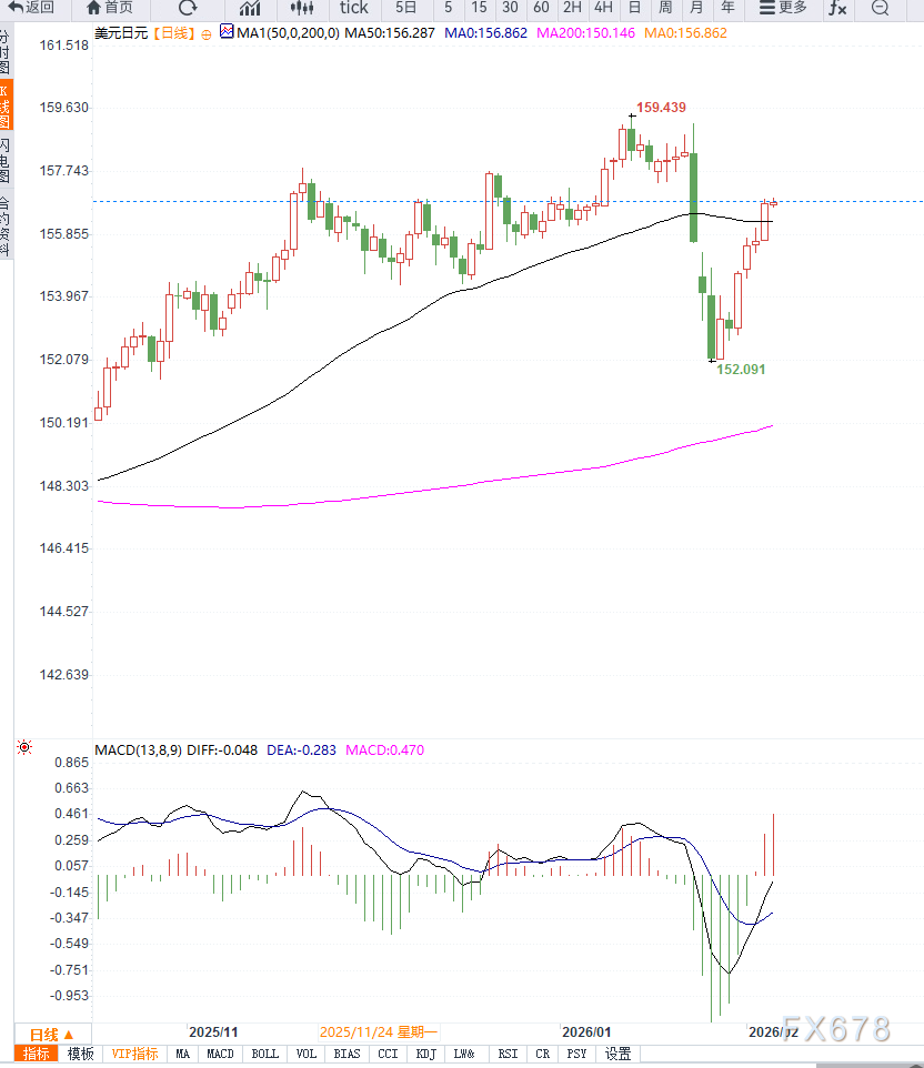 在此背景下,USD/JPY维持在157附近高位震荡。美国总统特朗普近期也就美联储人事问题表态称,若候选人支持加息,将不会被提名担任主席,同时强调美国仍存在降息空间。