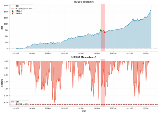 例如,我依据风险平价逻辑,手搓了一个简易的多资产组合,包含10年期国债期货、黄金期货、标普500ETF、纳指ETF、中证500期货、中证1000期货。截至1月29日金银暴跌前,过去三年收益率172.99%,最大回撤仅有6.28%,夏普比率高达3.15。