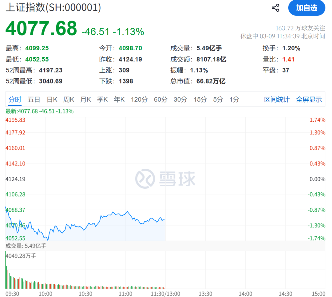 3月9日上午,A股通信、电子板块集体回调,截至午间收盘,板块跌幅均超4%。