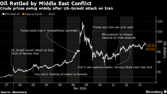 这是周一,也就是伊朗战争爆发的第10天,投资者突然意识到了中东石油生产中断的严重程度。恐慌情绪一度将原油价格推高了30%以上,身处新加坡家中的Reed Capital Partners首席投资官杰拉尔德·甘也被吵醒了。Reed的一些客户承受了巨额股票损失,公司员工急需指导,天还没亮就一次次打电话给他,称“我们需要保护投资组合。”