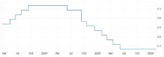 对于欧央行来说,2025年6月份以来就已经不再降息。因为自从2024年2月份以来,欧元区的核心通胀率就一直处于3%以下,高通胀问题已经基本解决。叠加欧元区最近三个月的失业率从6.3%下降至6.1%,劳动力市场表现良好,欧央行没有任何理由继续降息。