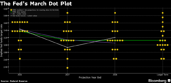 在最新的利率预测中,官员们继续预计2026年和2027年各降息一次(幅度25个基点)。没有政策制定者表示倾向于在今年加息。