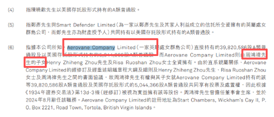 据奇富科技2024年年报显示,公司持股16%的第一大股东Aerovane Company Limited,为周鸿祎子女全资持有。不过由于直系亲属关系,周鸿祎也有权与子女就上述持股共同享有投票和处置权。