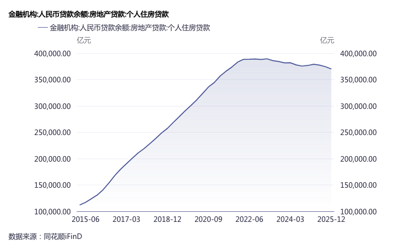 人民银行数据显示,长期以来个人住房贷款一直稳步增长,至2022年末达到约39万亿的峰值。但此后转为下行,2025年末为37万亿,相比峰值下降了约2万亿。