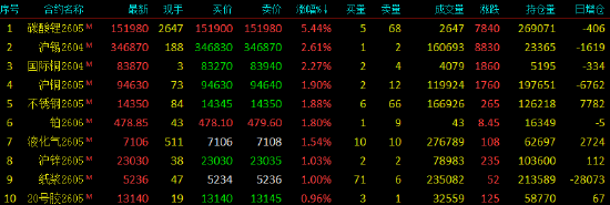 2026年3月24日,早盘开盘,国内期货主力合约涨跌不一。低硫(LU)跌超8%,SC、燃油跌超5%,集运欧线、、跌超4%,跌超3%;涨幅方面,涨超5%,、、涨超2%。