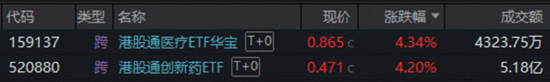 港股全面开花,医药率先反弹,创新药产业链表现尤为强劲,100%创新药研发标的——港股通创新药ETF(520880)、高CXO含量的港股通医疗ETF华宝(159137)高开高走,放量涨超4%!