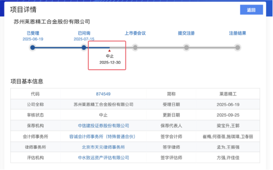 3月23日,苏州莱恩精工合金股份有限公司审议通过终止北交所上市申请。这是公司继2021年创业板撤回之后的第二次折戟。对一家成立于1999年的制造企业而言,这条资本路径走了二十余年,却始终没有真正走通。