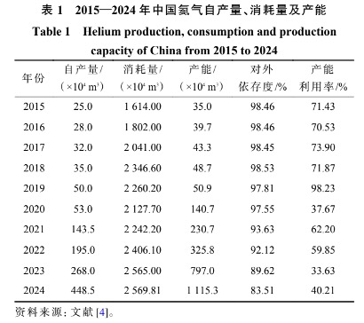 2020-2024年,中国氦气产能激增6.93倍,但产能利用率却低位徘徊,反映出生产端存在成本过高、原料气供给不足等现实问题,产能难以有效释放。