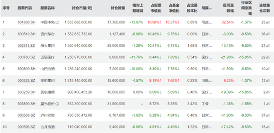从股价表现来看,这十大重仓股在2025年有八只都在下跌,仅中国中免和美的集团录得上涨。