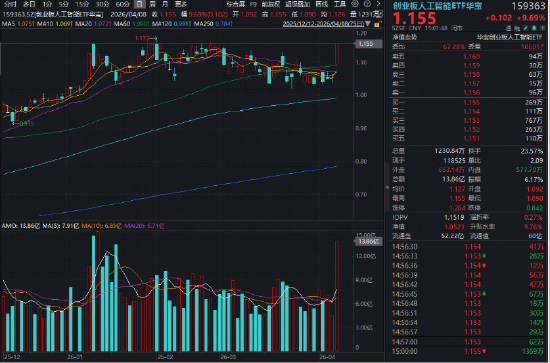 热门ETF方面,20CM高弹性的创业板人工智能ETF华宝(159363)跳空飙升,场内单边上扬收涨9.69%直逼前高,爆量成交超13亿元,交投居全市场AI主题类ETF首位!火热行情吸引资金布局,创业板人工智能ETF华宝(159363)单日净申购2.06亿份,按当日场内均价估算吸金超2亿元。