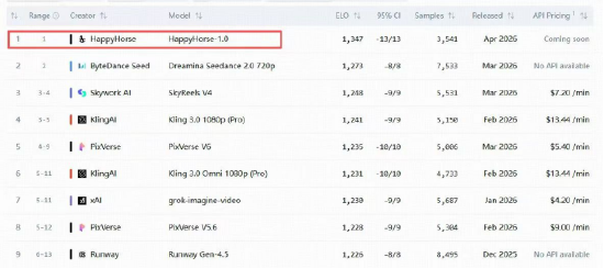 其二,Al视频评测平台Artificial Analysis突现神秘模型“Happy Horse“,强势超越Seedance2.0登顶榜首!业内普遍猜测极可能来自中国团队,有市场人士猜测该模型可能来自阿里通义实验室。