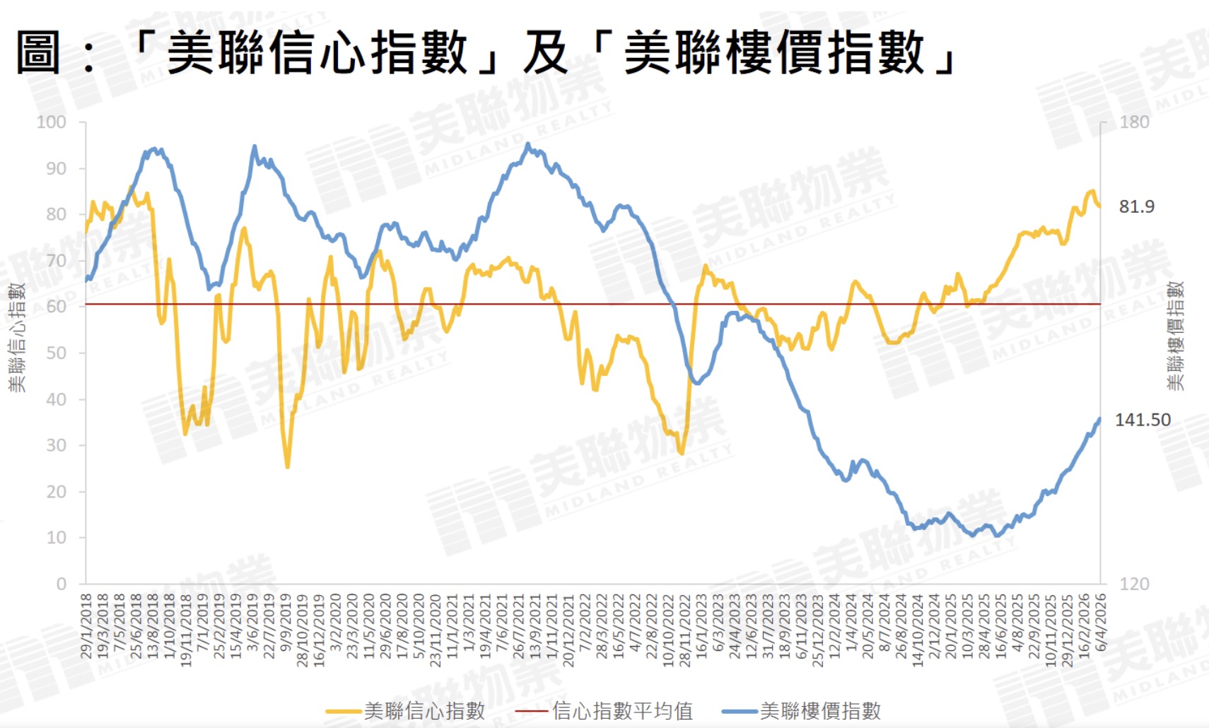 价格方面同样表现强劲。美联物业统计数据显示,“美联楼价指数”(大致反映两周前签署买卖合约的物业楼价)最新报141.5点,按周升0.45%,续创逾两年新高;年内至今累计上升5.04%,已逼近去年全年5.14%的升幅,楼价自2025年低位已累计反弹12.05%。