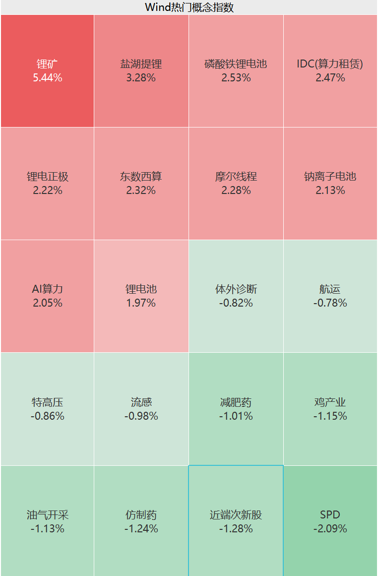 盘面上,电力设备、通信、有色金属、计算机等板块走强;电池产业链大爆发,锂矿、磷酸铁锂电池、钠离子电池等方向火热;石油石化、医药生物等板块走弱。