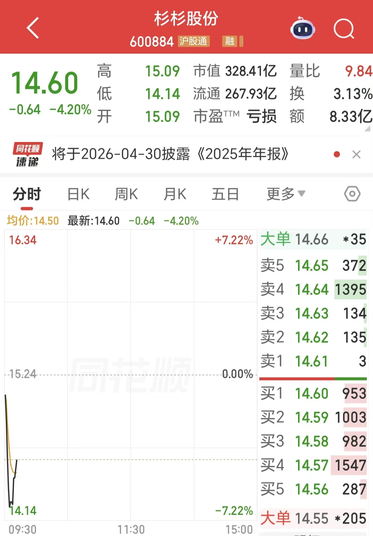 市场对于此次重整草案获得表决通过反应冷淡。4月16日开盘,杉杉股份一度下跌7%,截至界面新闻发稿前,其股价跌幅为4.2%,报14.60元/股,市值为328.41亿元。