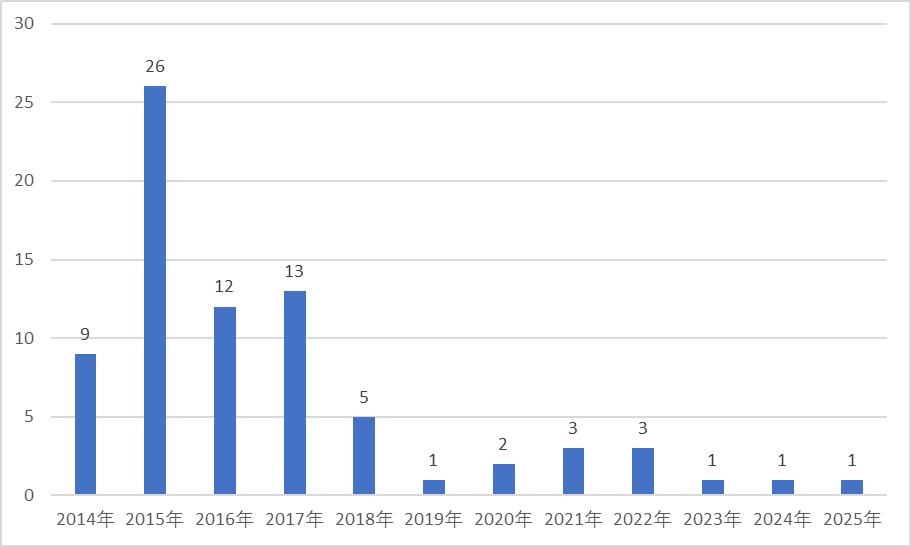 界面新闻根据中基协数据统计发现,今年以来主动注销的证券类私募管理人多为备案已有多年的老牌私募,其中有60家登记时间集中在2014年至2017年之间,占比接近八成。