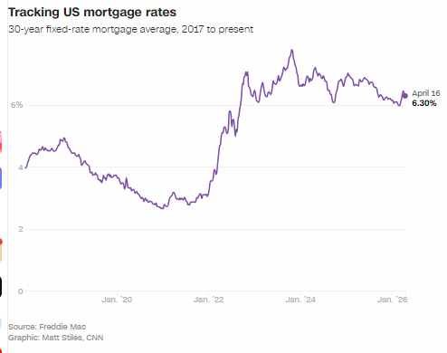 就在七周前,美以联合打击伊朗之前,30 年期抵押贷款平均利率降至 5.98%,三年来首次跌破 6%,为春季楼市释放出积极信号。
