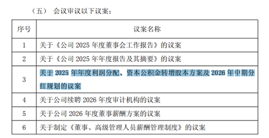 本次股东大会将审议六项议案,核心内容包括:关于《公司2025年度董事会工作报告》的议案,关于《公司2025年年度报告及其摘要》的议案,关于2025年年度利润分配、资本公积金转增股本方案及2026年中期分红规划的议案等。