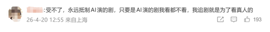 不过,仍有大量网友表达了对“AI艺人”的抵制之情:“授权AI的演员永远避雷”“以后不存在演员了,纯工具”“假的永远都是假的”“不想看演戏”。