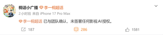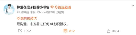 同期,于和伟、李一桐、王玉雯、陈哲远等多名艺人或旗下团队、粉丝会等纷纷发声,称“未签署任何影视AI授权”“大家不信谣不传谣”。