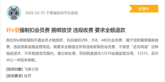 移卡也不例外。其在主营业务基础上发力助贷,截至2025年末,移卡的应收贷款余额为7.27亿元,同比上涨7.18%。移卡通过全资子公司广州飞泉融资担保有限公司上线助贷产品“好e借”。但黑猫投诉上,大量用户反映“好e借”强制扣除数百元会员费、利率过高。