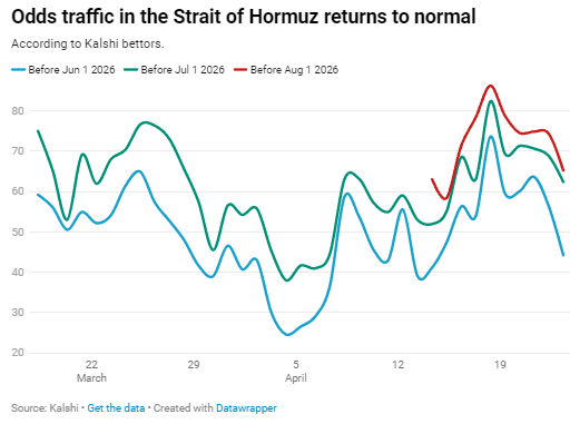 - 这些投注者认为,到 7 月恢复正常航运的概率为 59%,到 8 月则为 61%。