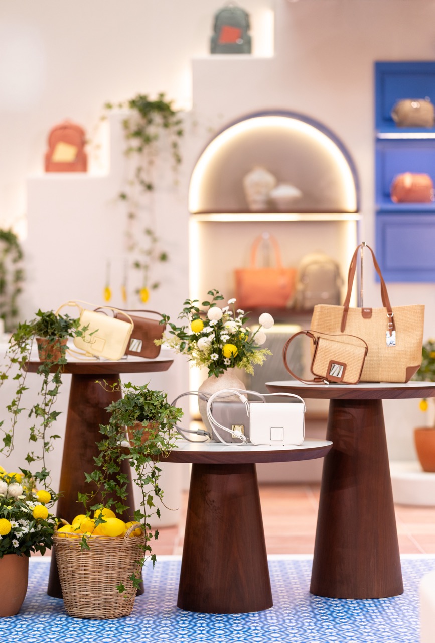 这一逻辑进一步延展至具体产品层面。Voyageur女士系列中,Q托特包与Celina双肩包承接了主要色彩表达;Olas与Harrison系列则通过拉菲草质感的编织材质,带入更具触感的夏日肌理。不同材质与图案之间形成呼应,使整季产品从视觉到触感,都指向一种更轻松、贴近日常的度假生活方式。