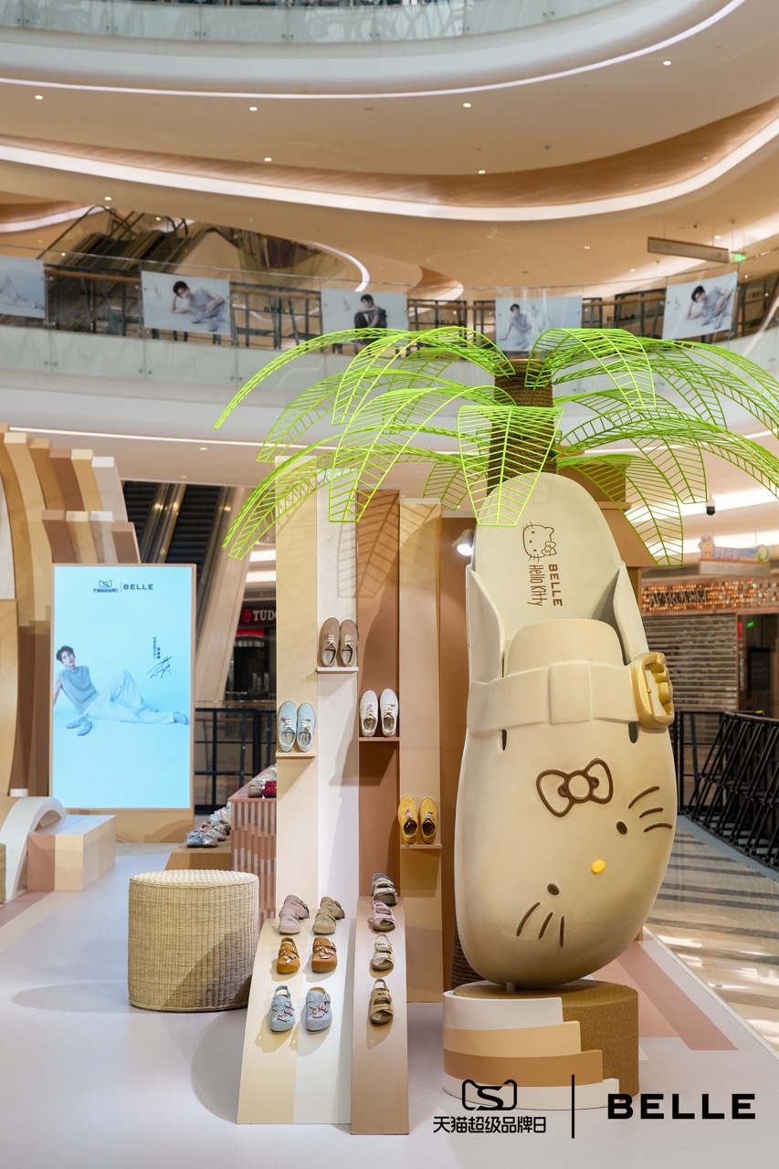 百丽(BELLE)携手“黑皮Hello Kitty”推出联名系列,并在深圳壹方城落地“百变自在岛”主题快闪店,将产品发售与线下体验同步展开。系列以“浪在一起好嘿皮”为核心表达,通过IP形象与原创设计的结合,试图在夏日场景中建立更具情绪指向的消费语境。