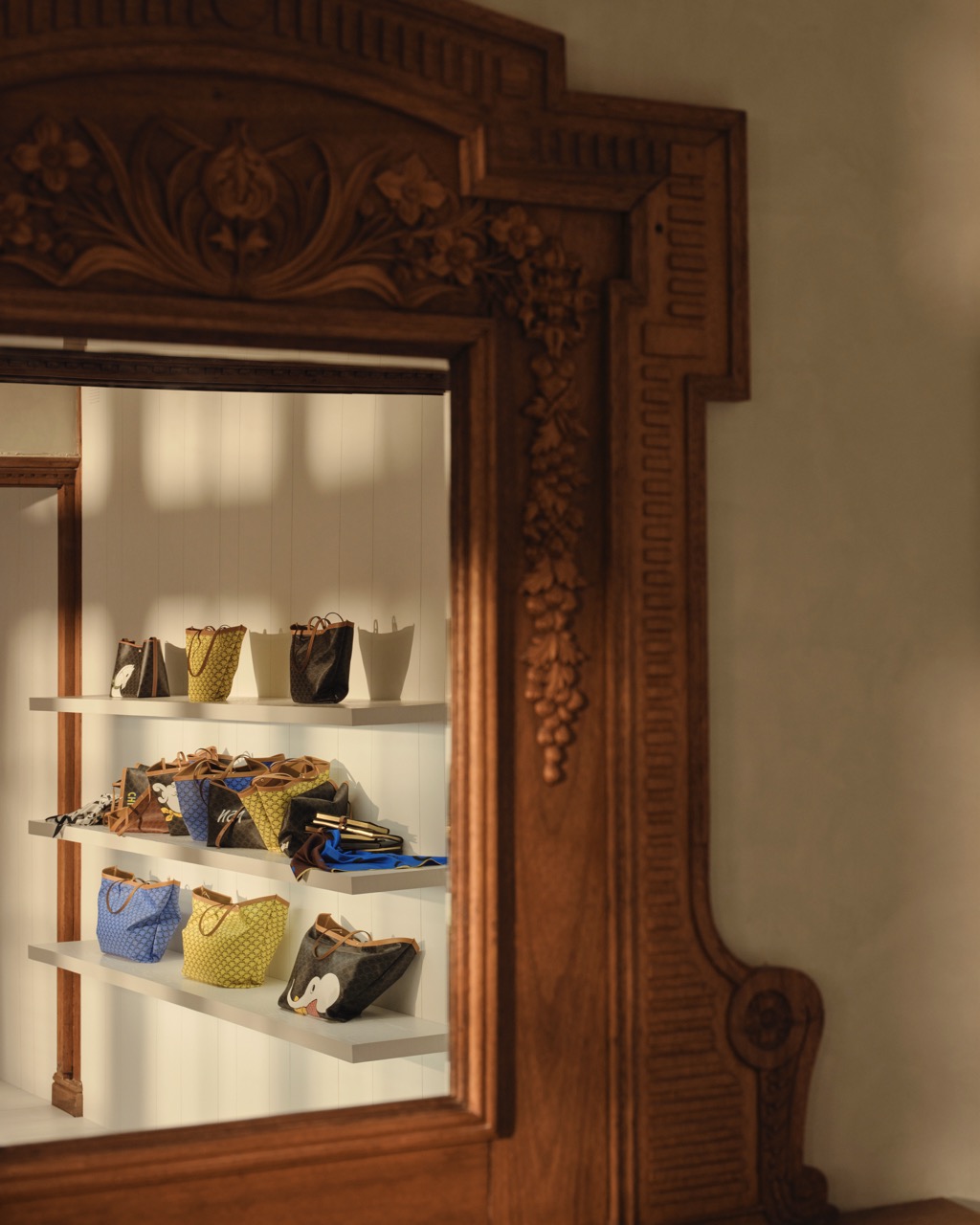 进入室内,一层以夏日居所为线索,将海滨小屋与巴黎风格陈设结合,呈现品牌当季成衣与配饰系列,并延伸出乒乓球互动与个性化定制区域,使消费路径在浏览与参与之间自然转换。二层则进一步细分为多个主题空间,涵盖珠宝与高定香水展示、照相亭及私享沙龙,通过古董家具与定制作品的组合,强化整体空间的质感表达。