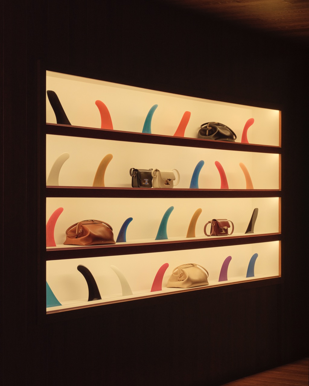 4月13日至5月10日,CELINE在上海张园开启“Été CELINE夏日限时漫游”,以海滨假日为灵感,在城市中心构建出一处短暂生成的度假场景。空间从外部即建立明确氛围:巨幅海景视觉与沙丘装置铺陈出海岸意象,并通过冰淇淋吧与骑行、冲浪主题木屋,将休闲活动嵌入整体动线之中。