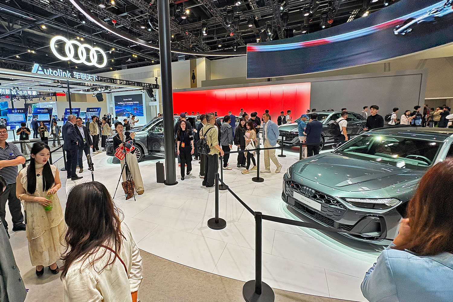 奥迪的展台则更像一场科技公司发布会。AUDI品牌首款SUV车型E7X全球首秀,其底层来自奥迪与上汽集团联合开发的智能数字平台。这个新品牌没有使用传统四环标识,某种程度上也释放出奥迪在中国市场重新塑造产品语言的压力。过去奥迪以“灯厂”和工程科技著称,如今它更需要讲清楚平台、软件和辅助驾驶。