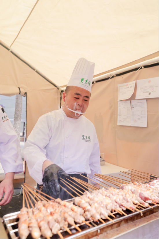 百年老字号东来顺,准备了羊肉串、特制奶酪、酸渣酪、驴打滚等特色产品及风味小吃。随着一批批羊肉串烤制,香味飘远,一口下去,满满京味儿。