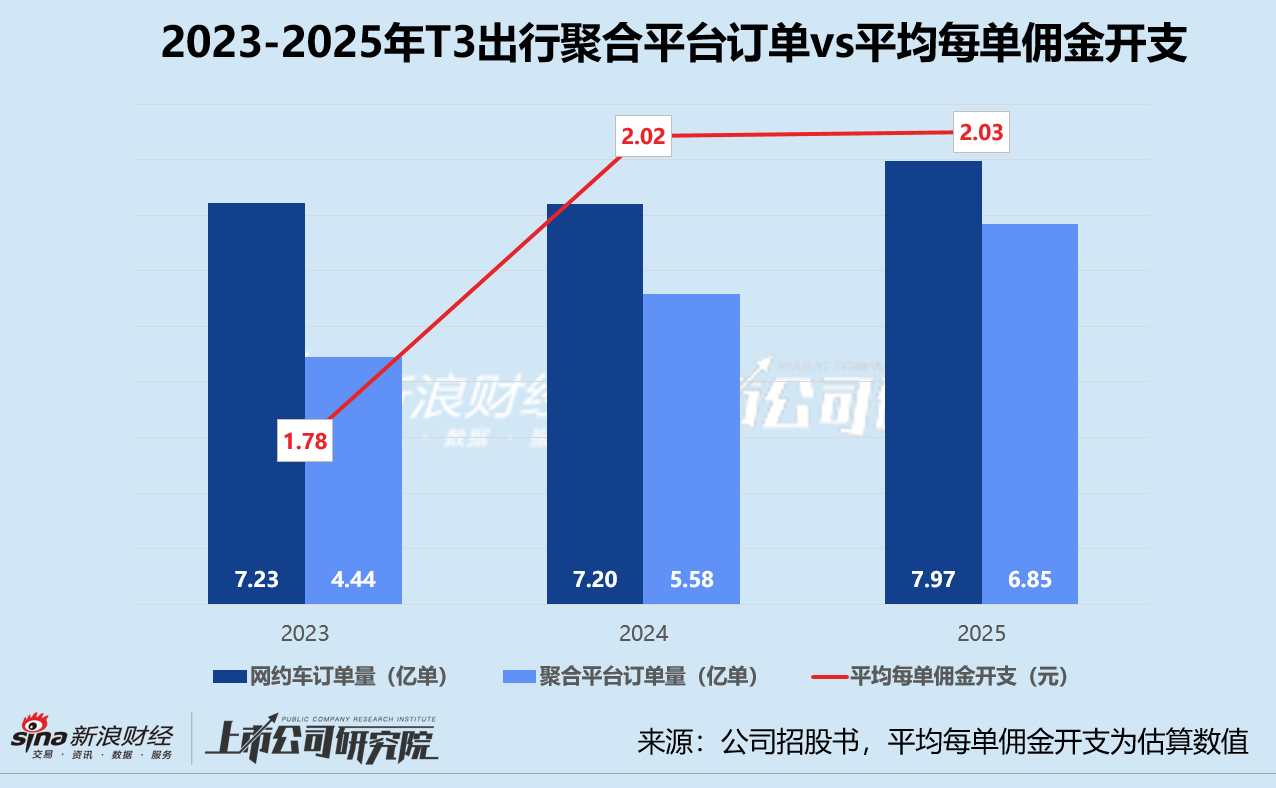 招股书显示,2025年T3出行共完成7.97亿单订单,总交易额达到188.91亿元,同比分别增长10.7%、10.5%;平均每单交易额约为23.70元,与2024年基本持平。然而,持续增长的规模与微薄的利润形成鲜明对比。若结合当期经调整净利润推算,平台平均每单净利润仅为0.07元,约占平均每单交易额的0.04%。