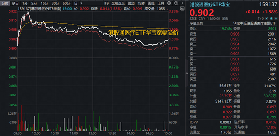 港股通医疗同样逆市表现,药明康德H股一度涨超17%,收涨13.57%,领跑所有港股通个股,带动港股通医疗ETF华宝(159137)摸高3.83%。尽管午后随市回落,但溢价逆向走高,最终收涨1.58%终结五连阴。