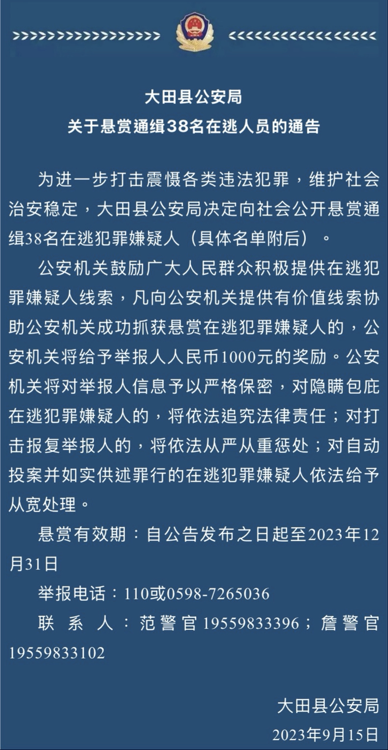 媒体证实,“X先生”名为苏江波,福建人,现年40岁。公开信息显示,早在两年多前,苏江波就曾被福建省大田县公安局通缉。2023年9月15日,大田县公安局发布了《关于悬赏通缉38名在逃人员的通告》(下称“《通告》”)。在该通告中,苏江波被认定为“涉嫌开设赌场”。